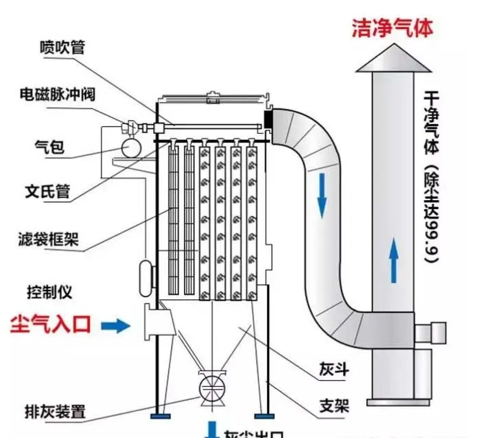 含塵氣體由風(fēng)機(jī)通過(guò)吸塵管吸入箱體,進(jìn)入濾袋過(guò)濾,粉塵顆粒被濾袋阻留在表面,經(jīng)過(guò)過(guò)濾的凈化氣體由出風(fēng)口排出,可直接排放在室內(nèi)循環(huán)使用,也可根據(jù)需要排出室外。整個(gè)除塵過(guò)濾是一個(gè)重力,慣性力,碰撞,靜電吸附,篩濾等綜合效應(yīng)的結(jié)果。除塵器連續(xù)工作一段時(shí)間后,濾袋表面的粉塵不斷增加,繼而進(jìn)行清灰,粉塵抖落在集塵器(抽屜)中,再由人工進(jìn)行處理 。