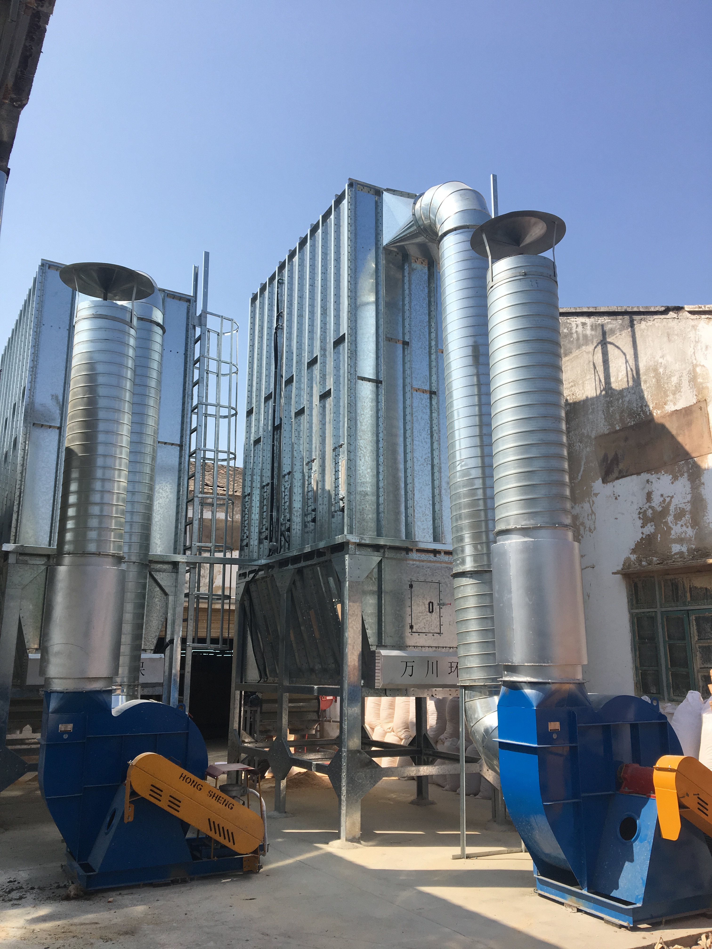 根據(jù)車間設(shè)備布置情況,由于木工機(jī)械吸塵口所需的風(fēng)量及風(fēng)壓、風(fēng)速要達(dá)到要求,并預(yù)留一些風(fēng)量,因此我們采用過濾能力較強(qiáng)脈沖袋式除塵器,匹配相應(yīng)的排塵風(fēng)機(jī),達(dá)到最佳吸塵效果。