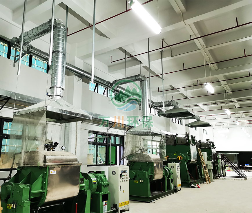 東莞某硅膠廠,成立于2003年,位于東莞市麻涌鎮,主要從事高科技的按鍵油墨及特種有機硅產品的研發、生產、銷售,該公司中設有捏合機生產車間,在生產工序中有廢氣和粉塵產生,污染了生產環境。對此,我們萬川環保為該公司提供捏合機廢氣粉塵處理解決方案。